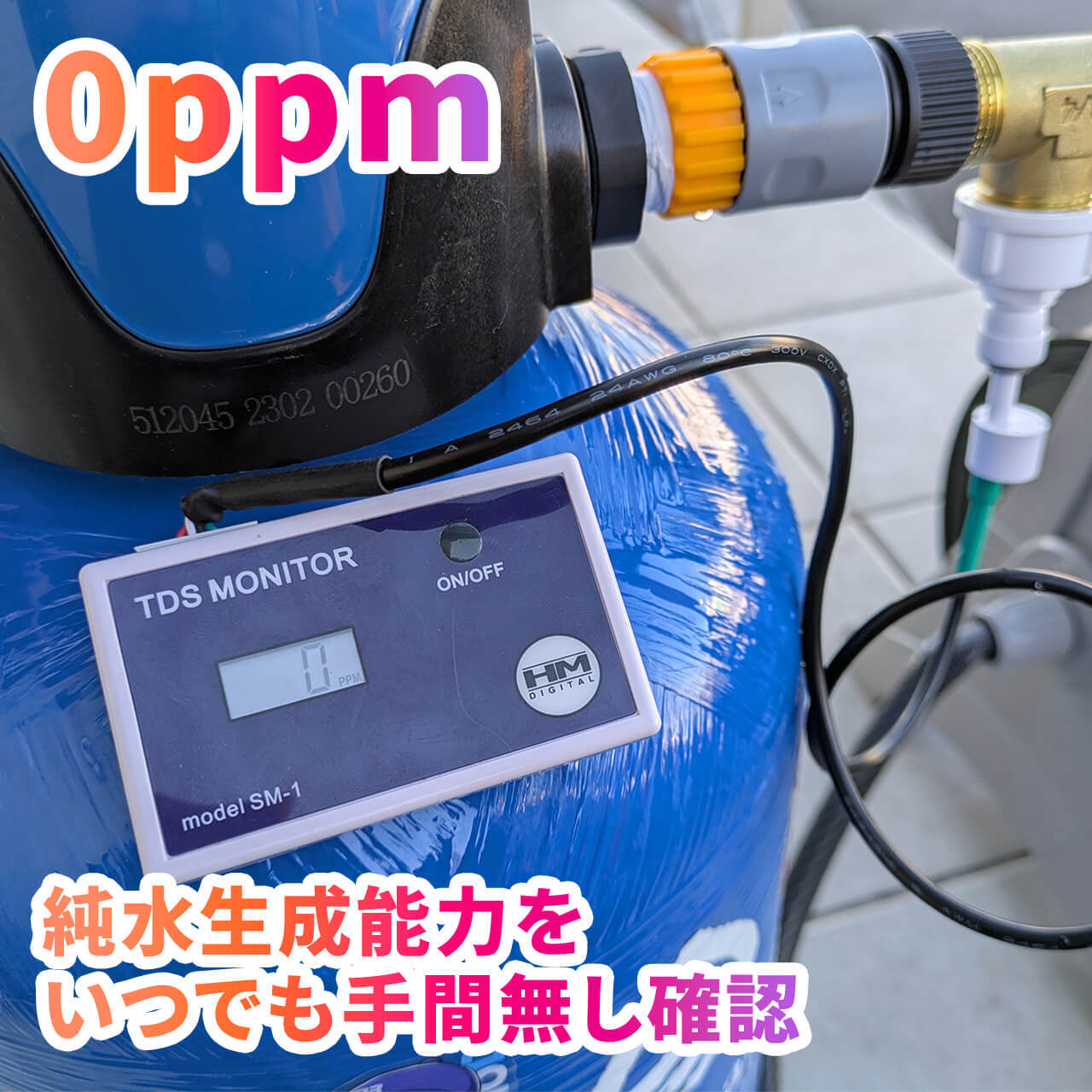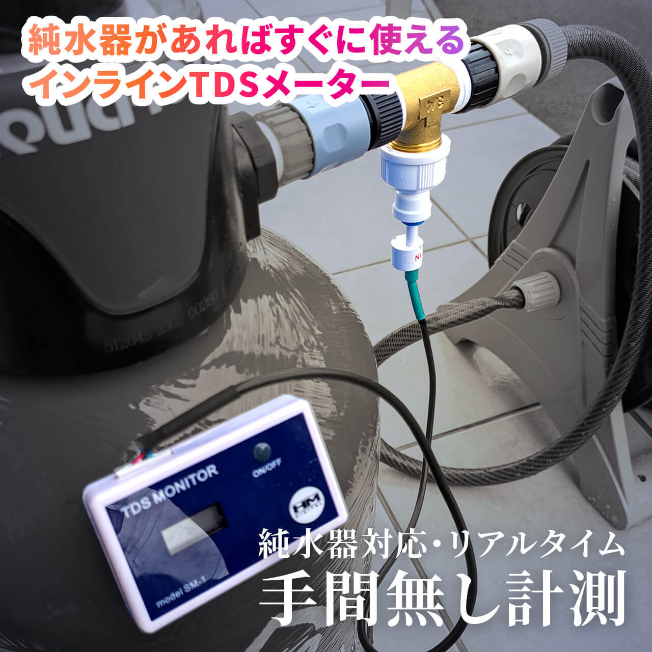 純水器の使用時、水の流れに対してリアルタイムで測定できるので、ポータブルTDSメーターなどで都度都度手動で測定する必要がありません。