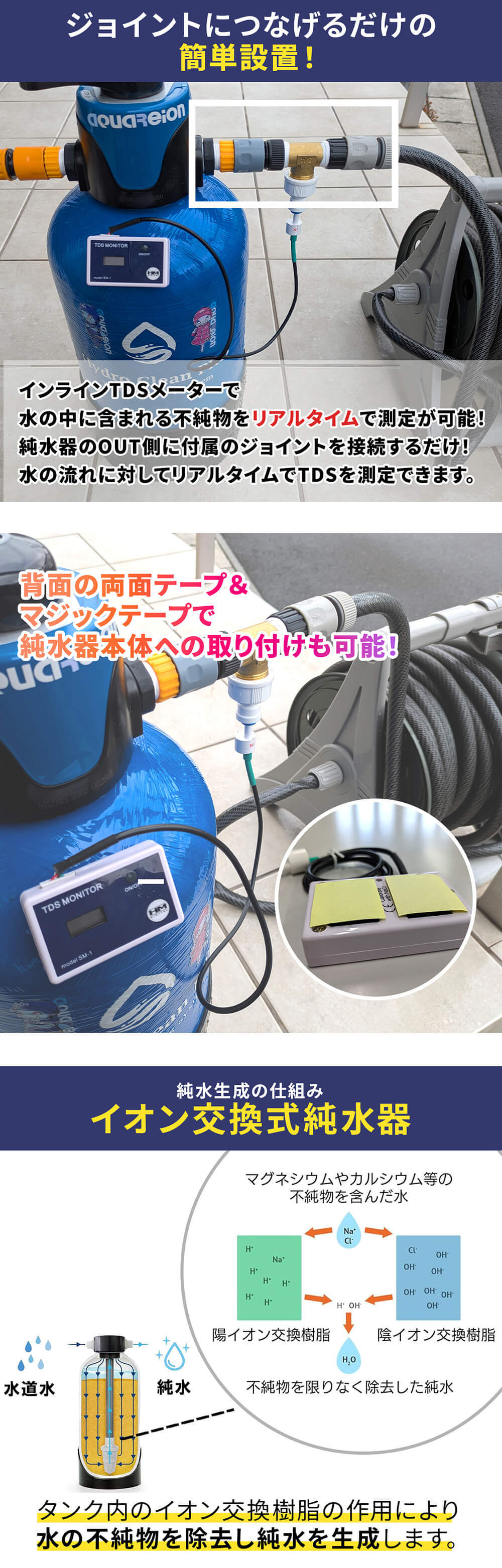 ※この値が上昇するとイオン交換樹脂の劣化したサインですので、新しいイオン交換樹脂にお取り替えください。